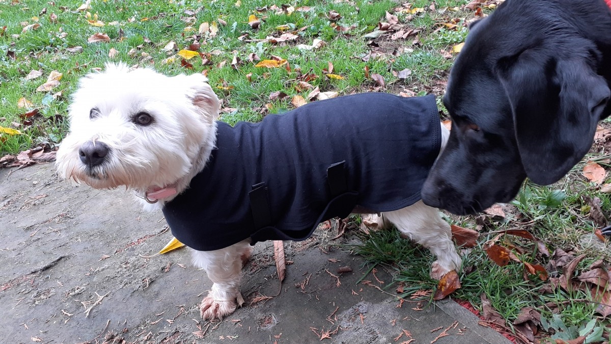 The HERBB® Cotton Dog Coat. To be used to protect your dogs skin if your dog has hair loss or healing skin, or simply if you want a warm breathable jersey layer.